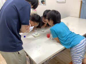 出来上がったスライムは、何とも言えない感触で、みんな手の平に広げて遊んでいました😃今日は、持ち帰れることが🏠とても嬉しそうでした。