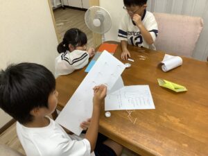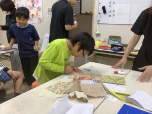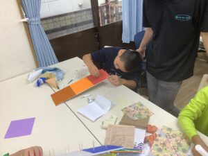 中には、折り紙がきちんと貼れていないと、何度もやり直すキッズもいましたが、低学年に教えてあげるキッズのおかげで、時間内にみんな出来あがり1人1人写真を撮ることができ、素晴らしい👍時間を過ごせました。