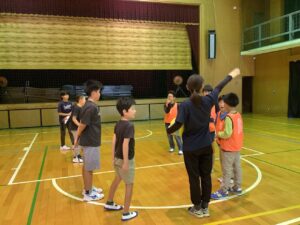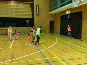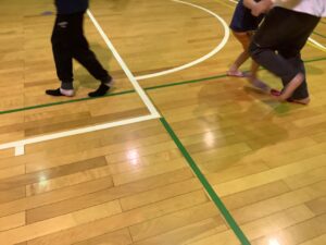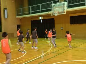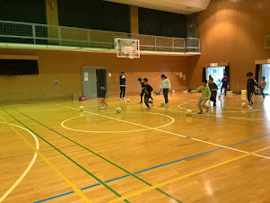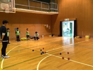 始まりはボール遊びからです。いつもは「手」でボールアップを行いますが