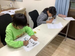 初挑戦のプリントに挑戦するキッズも何人かおりスタッフから解き方の説明を聞いてプリント後半には自力で解けるようになっていました👏❤️