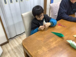 折り目をしっかり山型に、角を出すように折るのが難しい😓キッズ達💦