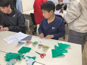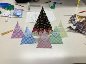 折り紙を使って、ツリー🌲とサンタクロースを1人1つずつは、頑張って作りましょう‼︎