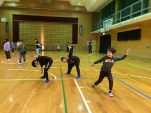 手拍子をして全員でリズムと呼吸を合わす練習でもあります。