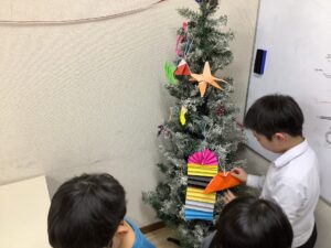 12月と言うことで、キッズのクリスマスツリー🎄にも、飾り付けをすることになりました。