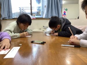 もうすぐ🎄クリスマス🎄ですね✨欲しいプレゼントは決まりましたか❓本日のキッズは🎄クリスマス🎄を飛び越えてお正月🎍に届くアレ📪を創作活動で書いていきます✏️❗️
