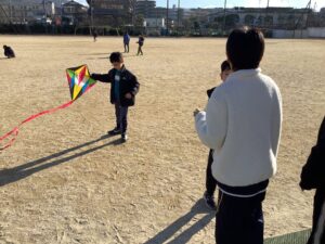持って来たボールを使ってサッカー⚽️をしたり、凧揚げに挑戦したりしました。