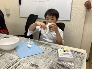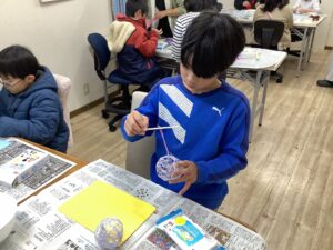 先週、お休みが多かったので、コットンボールを仕上げるキッズや、紙粘土を使って、今年の干支の馬🐴の創作から始めるキッズと分かれて行いました。