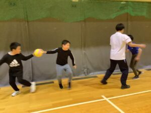 今日のメニューは「ドッチボール」と「ボール運動」をしました