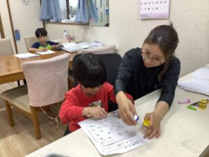 予定より多くプリントに取り組むキッズの