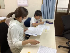 キッズは本日も変わらず元気な声と笑顔であふれてプリント学習📚していきます✏️