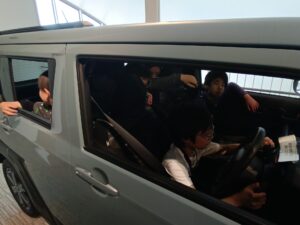 運転席に座ってハンドルを握ったりアクセルを踏んでみたり、助手席でいろんなボタンを押してみたり、、、本当に走っているような雰囲気で写真を撮ったりしました🚘